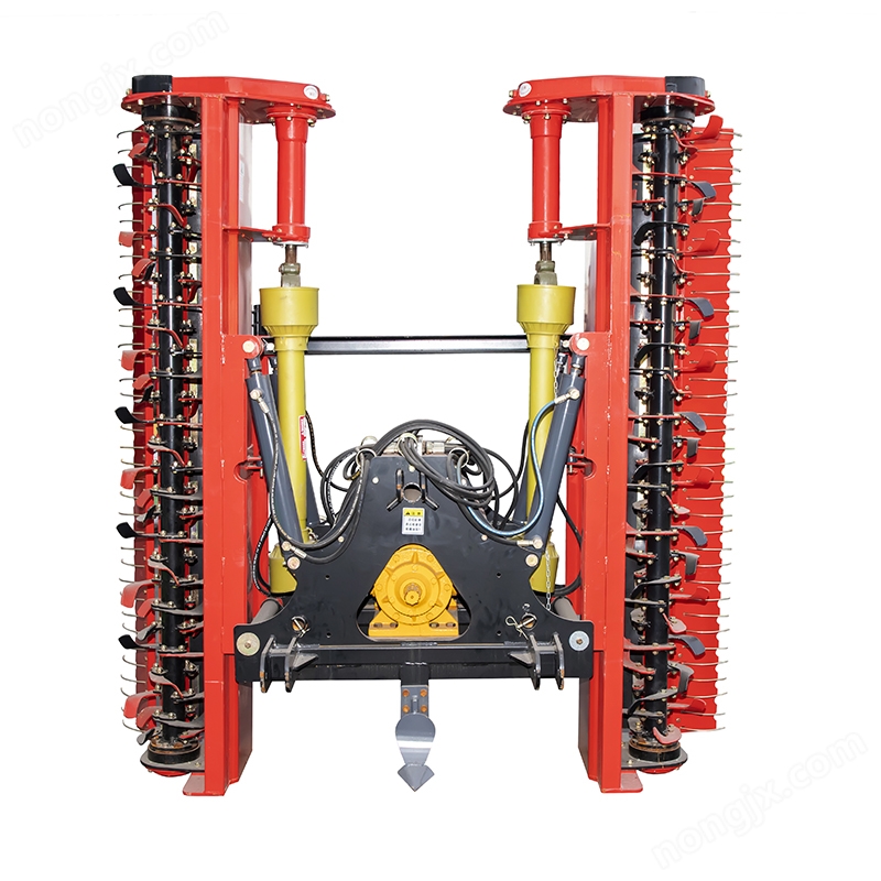 本公司生產的折疊式水田平地攪漿機分兩折疊和三折疊兩種型號,具有碎土、耙漿、埋茬、平地復式作業功能。作業幅度寬大,節省空間,方便運輸。