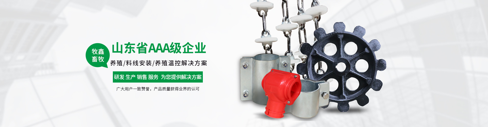 德州牧鑫畜牧養殖設備有限公司是集產品研發、制造、銷售與安裝等服務為一體的畜牧養殖設備專業生產企業,公司擁有資深的畜牧技術團隊和安裝隊伍,具有豐富的規劃、設計、生產、施工、維護經驗,可以承攬各種規模豬場自動料線設計安裝工程,技術人員上門設計,現場跟養殖企業溝通設計安裝圖紙,滿足客戶各項要求和意愿。以先進的技術和優良的產品,不斷完建立完善全方位的營銷服務網絡及完善的售后服務體系,為養殖業主創造更大的經濟效益。 德州牧鑫畜牧主要產品有:1豬用自動化喂料設備:玻璃鋼料塔、鍍鋅板料塔、塞盤料線、絞龍料線、干濕喂料器、不銹鋼料槽、清糞系統、溫控系統等各種養殖零部件;公司始終堅持以專業的技術、專注的精神制造優良產品、建精品工程為目標,為中國養殖業同行提供先進的現代化養殖設備與器械。 目前牧鑫畜牧的料線設備已經服務山東、河北、河南、山西、陜西、江蘇、浙江、江西、安徽、湖南、湖北、東北三省等全國各大養殖區 [