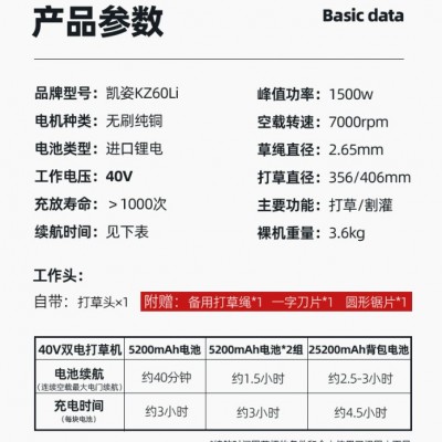凱姿KZ60LI電動割草機 割灌機 充電式多功能開荒園林鋰電池除草機